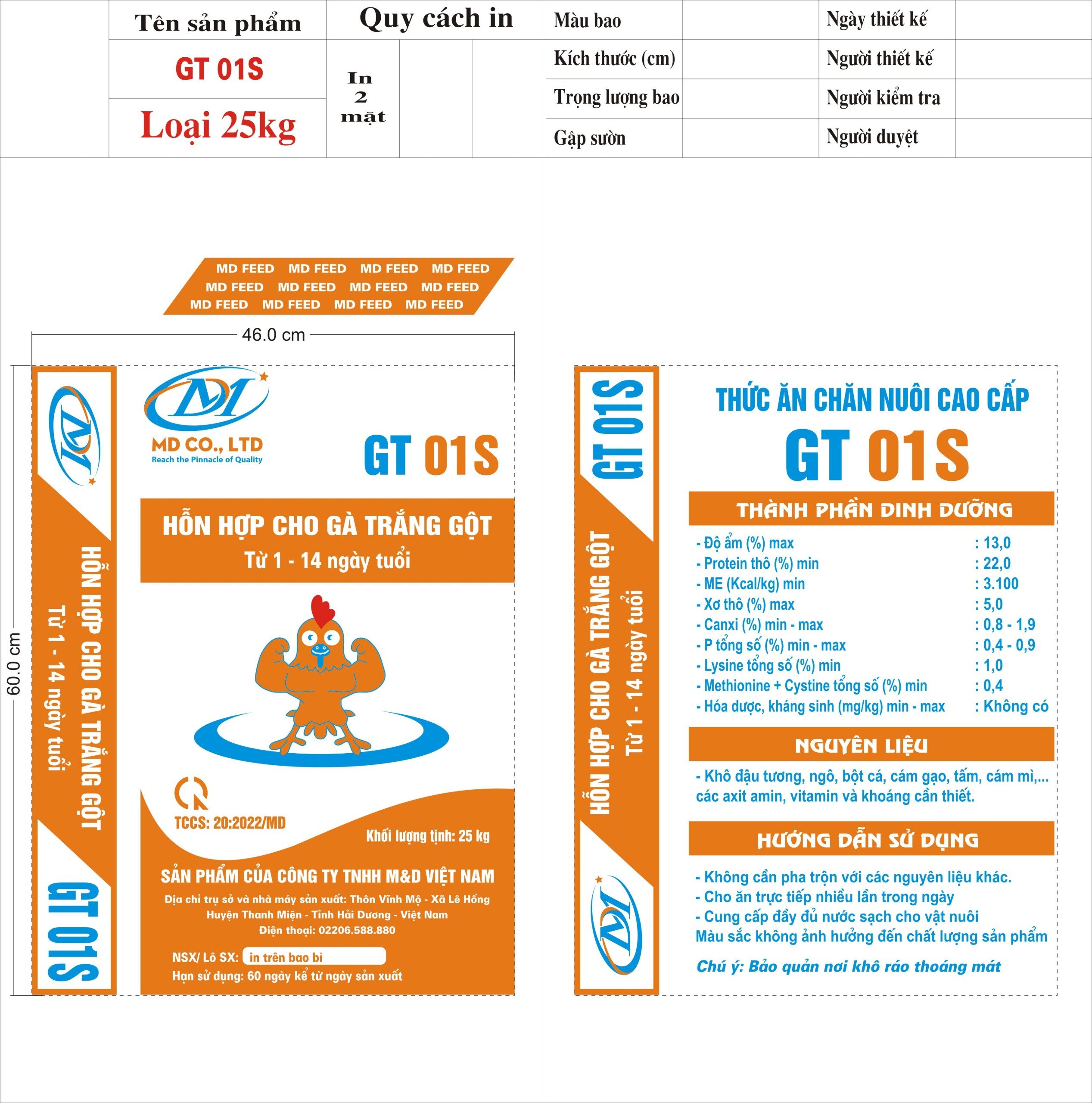 Thức ăn hỗn hợp cho gà trắng gột GT01S