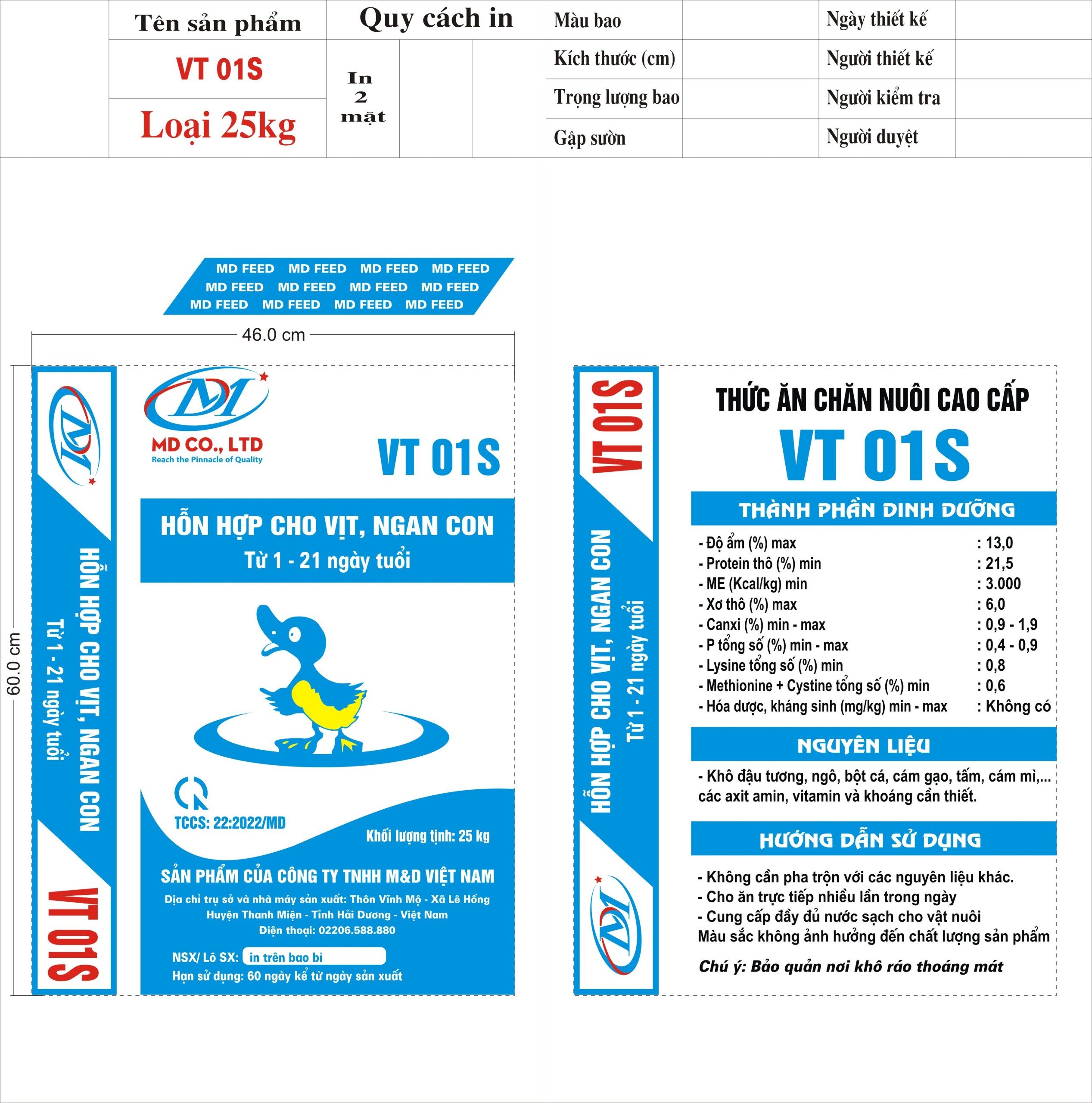 Hỗn hợp cho vịt ngan con – MD31