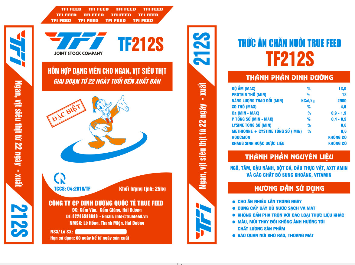 Hỗn hợp dạng viên cho vịt ngan thịt – TF212S